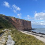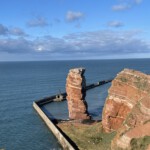 Am 18.10.24 startete unsere Reise nach Helgoland mitten in der Nacht gegen 03:00 Uhr in Lübben. Für einige Personen aus unserer Klasse war dieser Umstand so aufregend, dass Sie vergaßen, davor einige Stunden Schlaf zu tanken. Mit dem Bus ging es zum Berliner Südkreuz. Von da aus beförderte uns ein ICE bis nach Hamburg. Anschließend durften wir im Regionalexpress nach Cuxhaven den Sonnenaufgang genießen. In Cuxhaven angekommen gab es erstmal ein wenig Frühsport, denn der Weg zur Fähranlegestelle musste mit den Gepäckstücken absolviert werden. Hierdurch wurde die Stadt in den frühen Morgenstunden durch ein gleichmäßiges Klappern der Kofferrollen beschallt. Bei windig-wechselhaftem Wetter legte die Fähre nach Helgoland ab und unser letzter Reiseabschnitt begann. Spätestens jetzt war es an der Zeit, seinem Gleichgewichtsorgan gut zuzureden, denn der Wellengang war nicht ganz ohne. Ablenkung vom Auf und Ab der Fähre bekamen wir durch eines der größten Containerschiffe der Welt (400 Meter Länge), welches wir überholten. Ein baugleiches Schiff blockierte im Jahr 2021 den Suez Kanal. Nach 10 Stunden Reisezeit kamen wir endlich auf Helgoland an und bezogen unsere Unterkunft, welche am anderen Ende der Insel am Wasser lag. Der Nachmittag wurde für die Einrichtung der Zimmer und eine erste Versorgung mit schnell verwertbaren Kalorien genutzt.