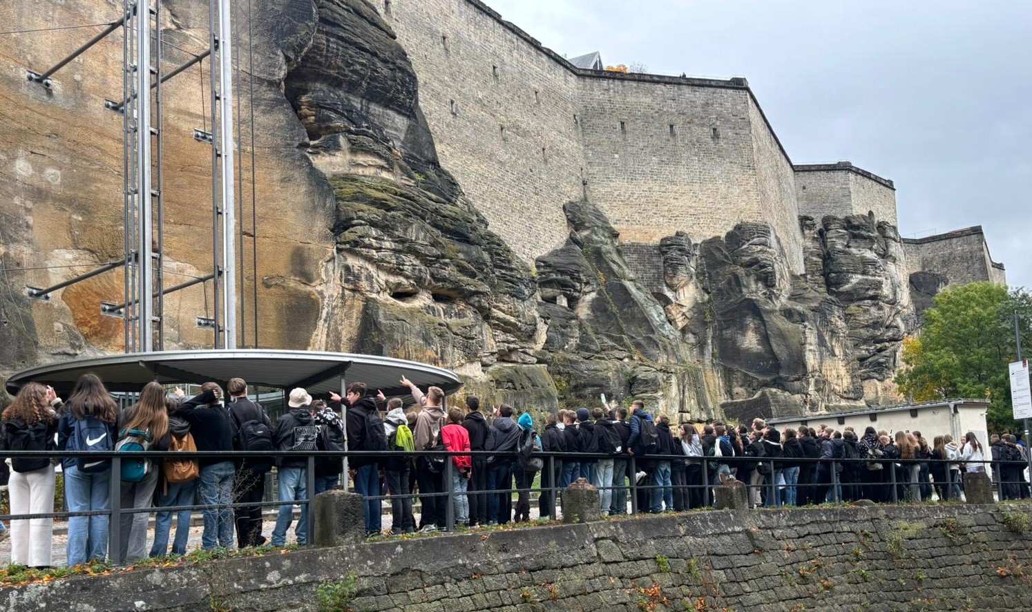 Es gab zwar nicht das Fünf- Sterne- Menü, aber es hat doch Abwechslung mit Pizza oder Nuggets am Abend und sogar Plinse zum Frühstück gegeben. Jeden Morgen kämpfte jeder mit seinem inneren Schweinehund als Endgegner um 7.40 Uhr zum Frühstück im Speisesaal einigermaßen wach zu sein. Die Nächte waren kurz und die wenigen Tränen schnell getrocknet. Kleine Wunden wurden versorgt, große Mengen Spezi getrunken, Minisalami to go gesnackt und maximale Müdigkeit nach durchlebten Nächten sorgte für gespenstische Stille im Bus zu den Ausflugszielen. Wir waren in Dresden zum Shopping und Sightseeing und haben die Festung Königstein erklommen. Auf den Fluren im KIEZ wurden kreative TikTok Clips gedreht, Tischtennis in jeder freien Minute gespielt, Karten oder Monopoly gezockt und der neueste Klatsch besprochen.